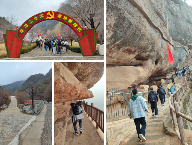 全体师生满怀热情来到薛家寨革命旧址,重温薛家寨保卫战的感人故事, 切身感受革命先烈们在薛家寨和陕甘边革命根据地的战斗岁月。接着一起踏上了红军当年所走之路。薛家寨陡峭险峻,但丝毫没有影响到师生们攀爬的热情,通过重走红军路,使大家深刻体会到在革命战争年代先烈们所经历的各种艰难险阻,同时也为他们至死不渝的革命理想和为理想信念而不懈奋斗的精神所感动。沿着红军战斗过的足迹,分别参观了当年红军战士们在艰苦的环境下驻扎的历史遗迹,在一件件实物和场景前驻足观看,抚今追惜,学思践悟,亲身感受根据地建设之艰辛,老一辈革命家开辟陕甘边革命根据地的不易,更加坚定了党员们不忘初心听党话、牢记使命跟党走的信念。