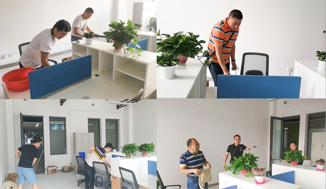 工会进行了深入的动员和细致的安排,事先为大家准备了拖把、抹布、扫帚、簸箕等劳动工具。为参加本次扫除活动,有的老师5点半起床,只为搭6:50的班车;有的老师干脆自己驱车前往创新港,都只为不错过任何一次与新家亲密接触的机会。劳动开始后,大家全情投入,干劲十足,相互协作,有的提水,有的拖地,有的擦桌子,对研究生工位和教职工办公室进行了认真打扫。