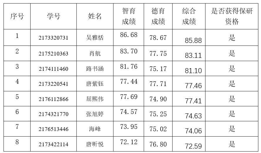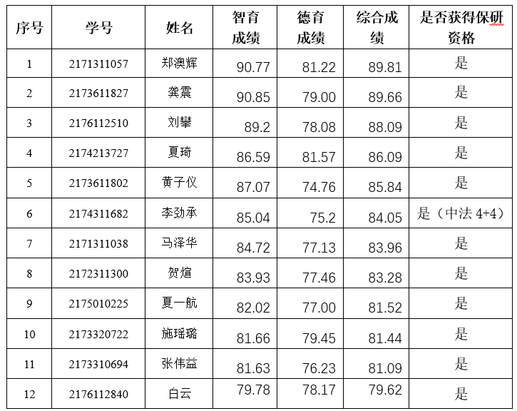 推荐2021届优秀本科毕业生免试攻读硕士学位研究生工作办法》,经过智育、德育成绩核算等环节,我院吴雅恬等19名同学(含中法项目)获得推荐免试攻读硕士研究生资格,现予以公示。