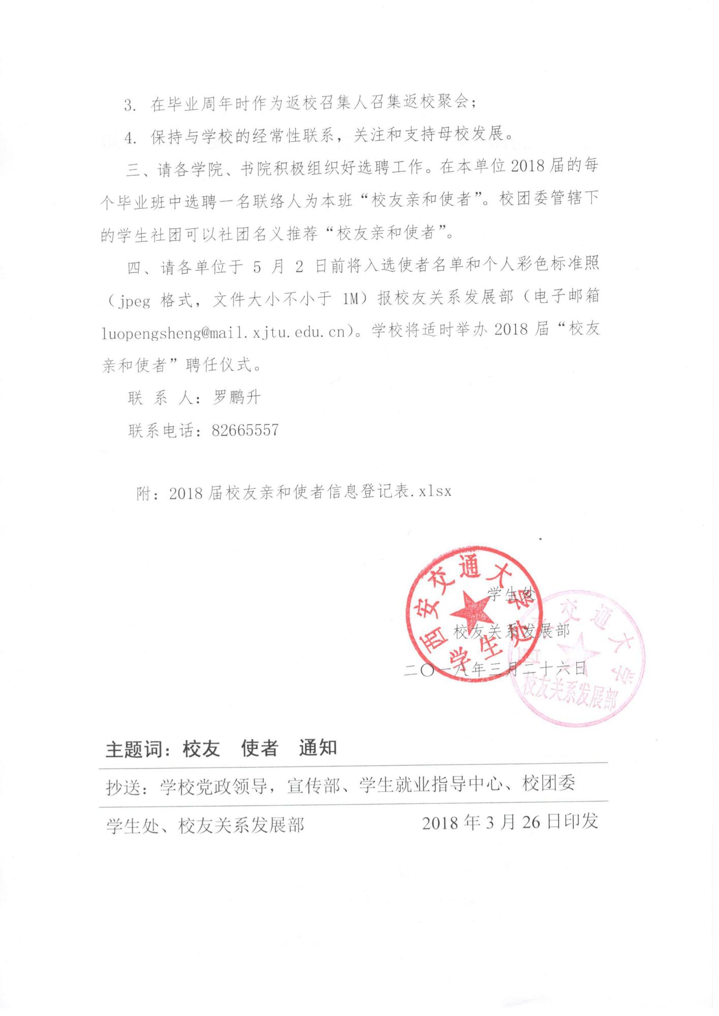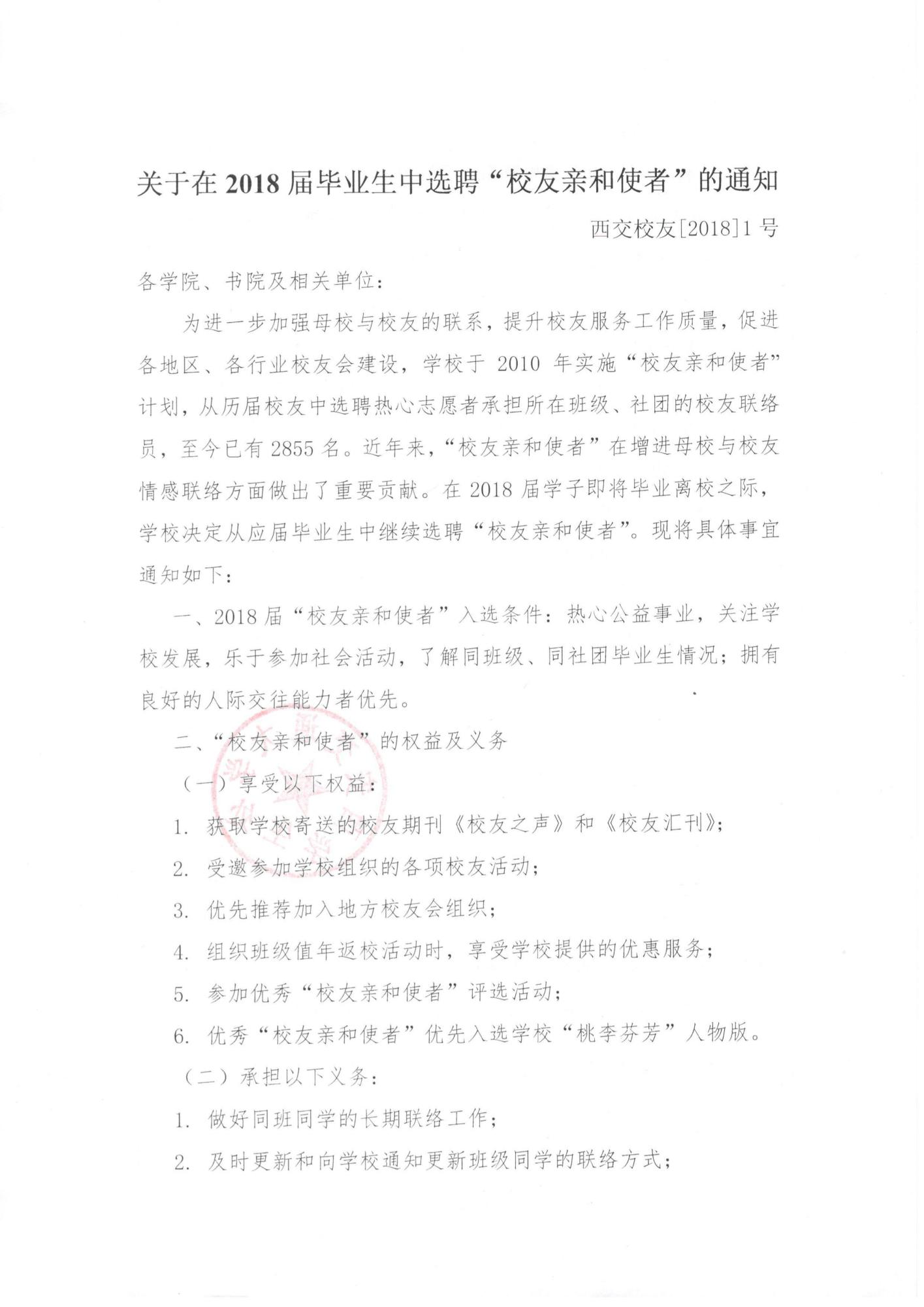 关于在2018届毕业生中选聘校友亲和使者的通知