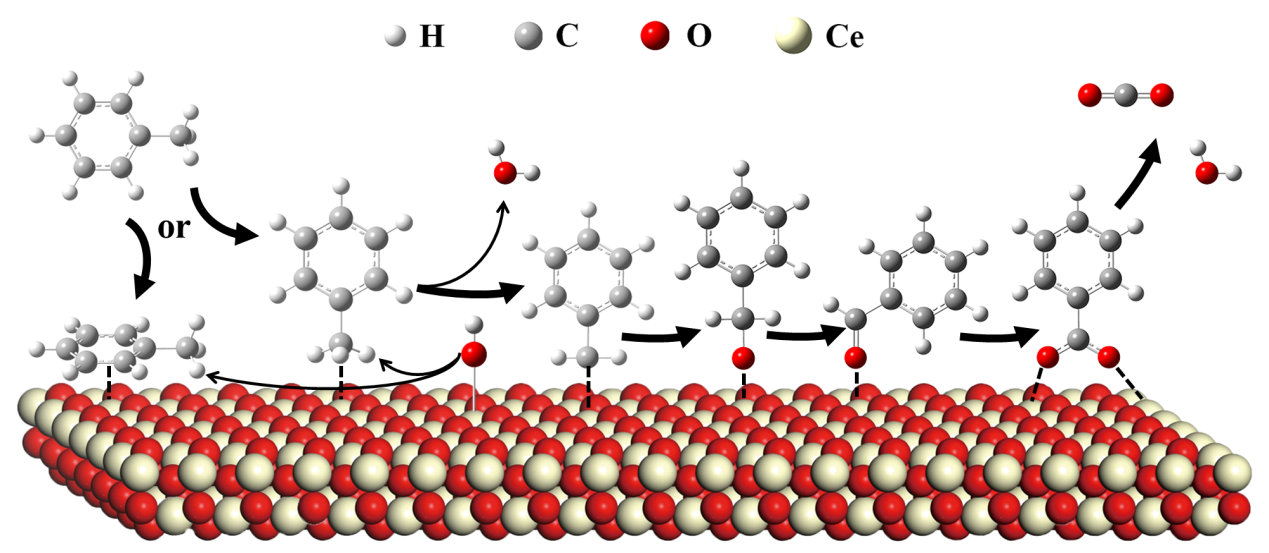 该成果以“Morphology Effects of CeO2Nanomaterials on the Catalytic Combustion of Toluene: A Combined Kinetics and Diffuse Reflectance Infrared Fourier Transform Spectroscopy Study”为题发表于《ACS Catalysis》(IF=13.084),论文第一作者为厕所偷拍