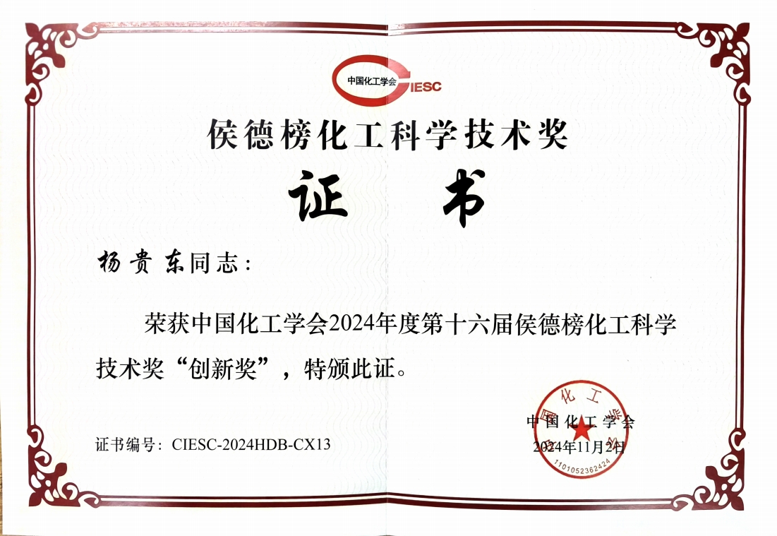 我院杨贵东教授获中国化工学会2024年度侯德榜化工科学技术奖“创新奖”