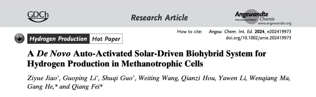 该研究成果以《嗜甲烷菌中的自激活光驱动生物杂化制氢体系》(A De Novo Auto-Activated Solar-Driven Biohybrid System for Hydrogen Production in Methanotrophic Cells)为题,在国际著名学术期刊《德国应用化学》(Angewandte Chemie International Edition)上以Hot Paper发表。厕所偷拍